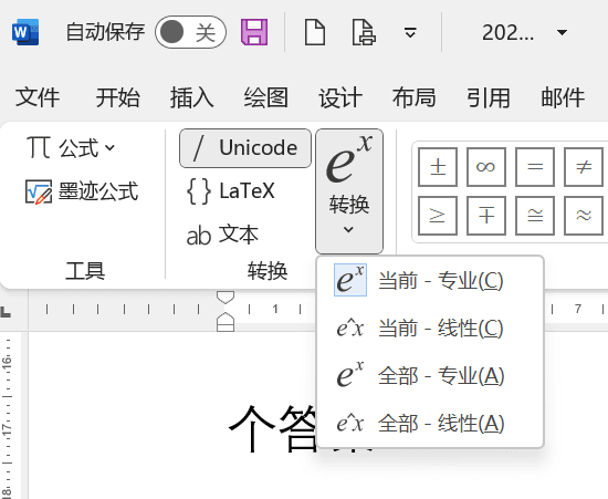 Word 中的公式输入技巧