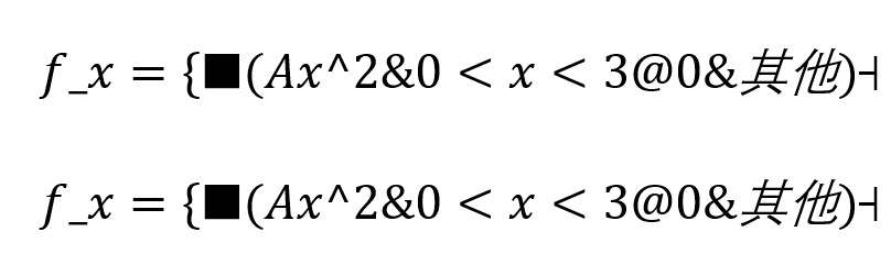 遇到这么一个问题,以下两个公式在线性模式(源格式)下看完全一样(顺便,最右边的符号是\right或\close),